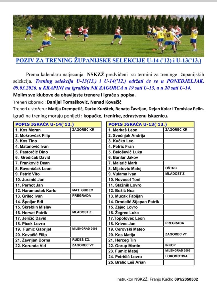Trening selekcija U-14 i U-13 u Krapini, 09.03.2026.